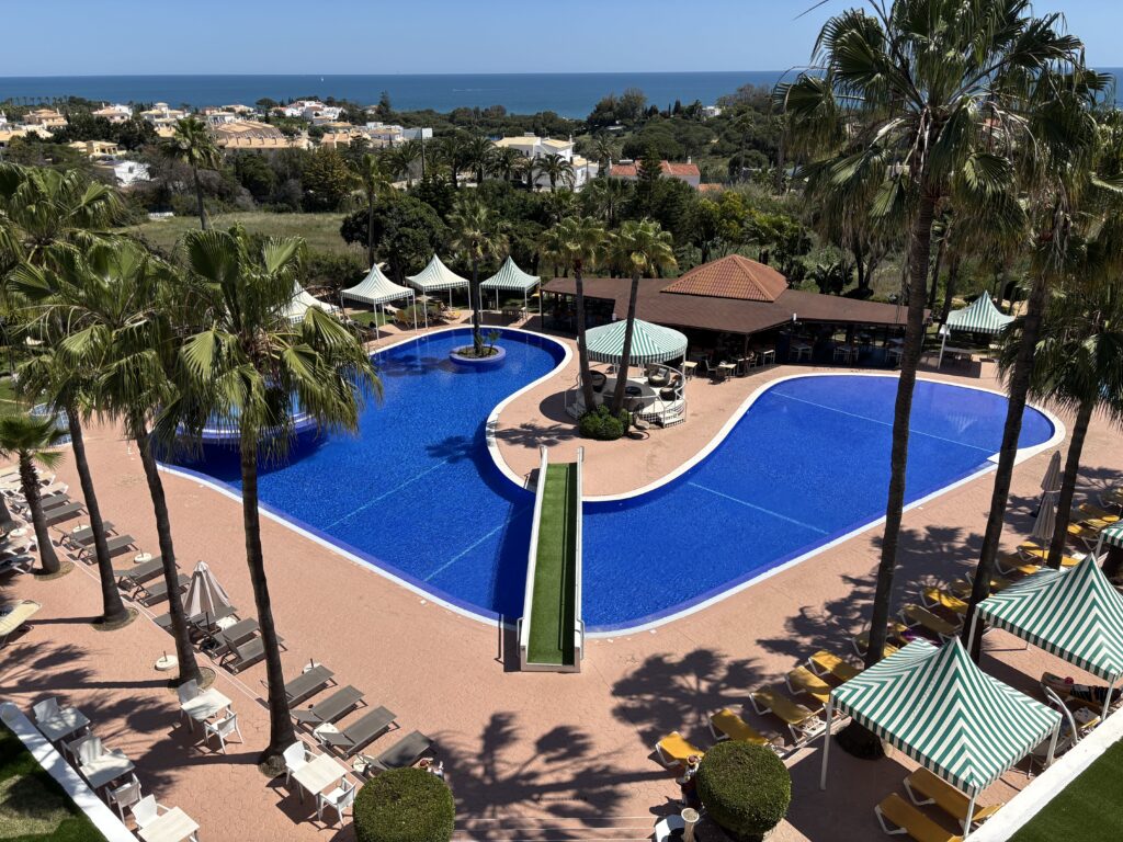 Et fin-fint hotell, som er vårt faste utgangspunkt: Her kan du ta svalestup rett ned i bassenget. Atlanterhavet ses i det fjerne.
